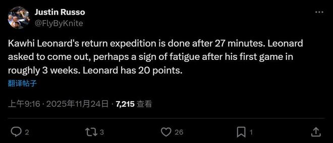 本场赛后快船随队记者Justin Russo又曝出,小卡本场仅出战26分钟并非是教练组刻意安排,而是小卡自己主动要求下场,他看起来有些不适,径直走下场后在场边独自拉伸了一下。